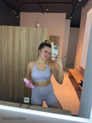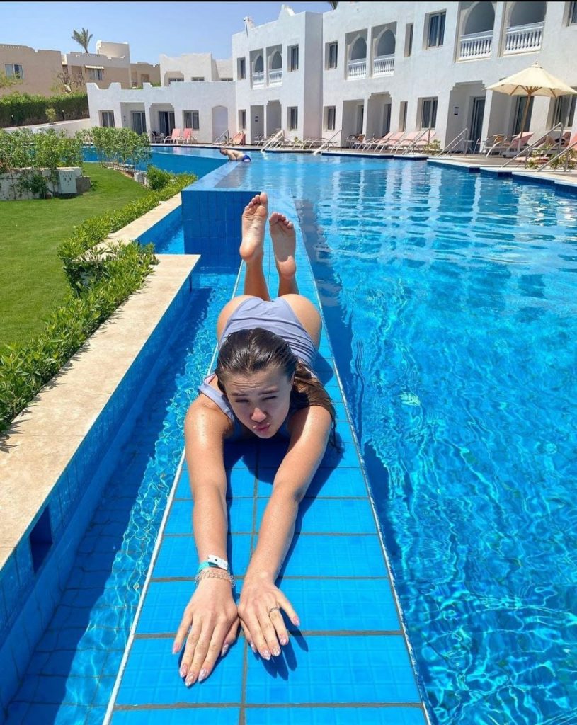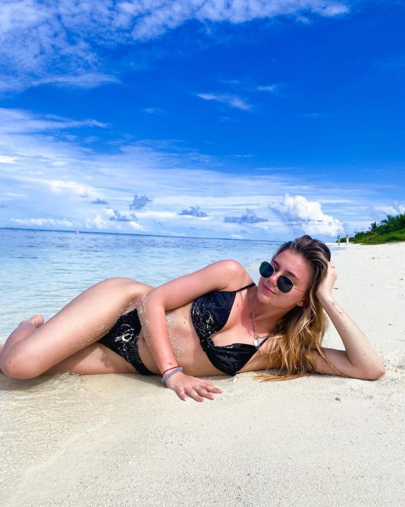 Адушкина выросла в обеспеченной семье с поддерживающими родителями: отец — предприниматель, мать занимается изобразительным искусством. Она активно ведёт свои аккаунты в социальных сетях, делясь как обычными фотографиями, так и более откровенными снимками.